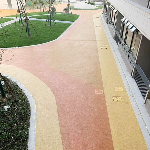 普通透水路面施工不專的業施工隊伍,沒有核心產品,配比方案隨意,路面時常會有結塊等情況產生。